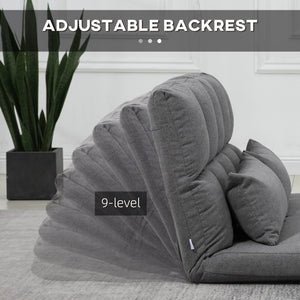 51" Folding Floor Sofa, Foldable 2-Seater Lazy Sofa Sleeper Bed, Adjustable Linen Floor Couch with 9-position Backrest, 2 Pillows and Wide Seat for Living Room, Grey