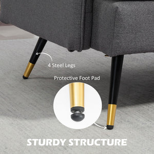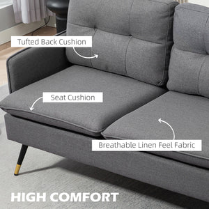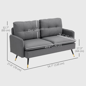 55" Loveseat Sofa, Linen Love Seat w/ S spring, Steel Legs and Button Tufting, Small Couch for Living Room, Dark Grey