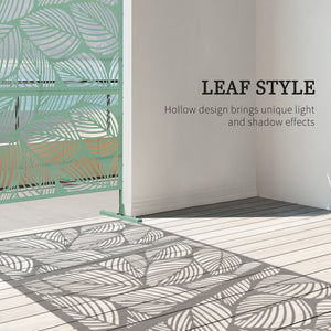 6.5FT Decorative Outdoor Divider, Metal Privacy Screen with Stand, Leaf Style, Light Green