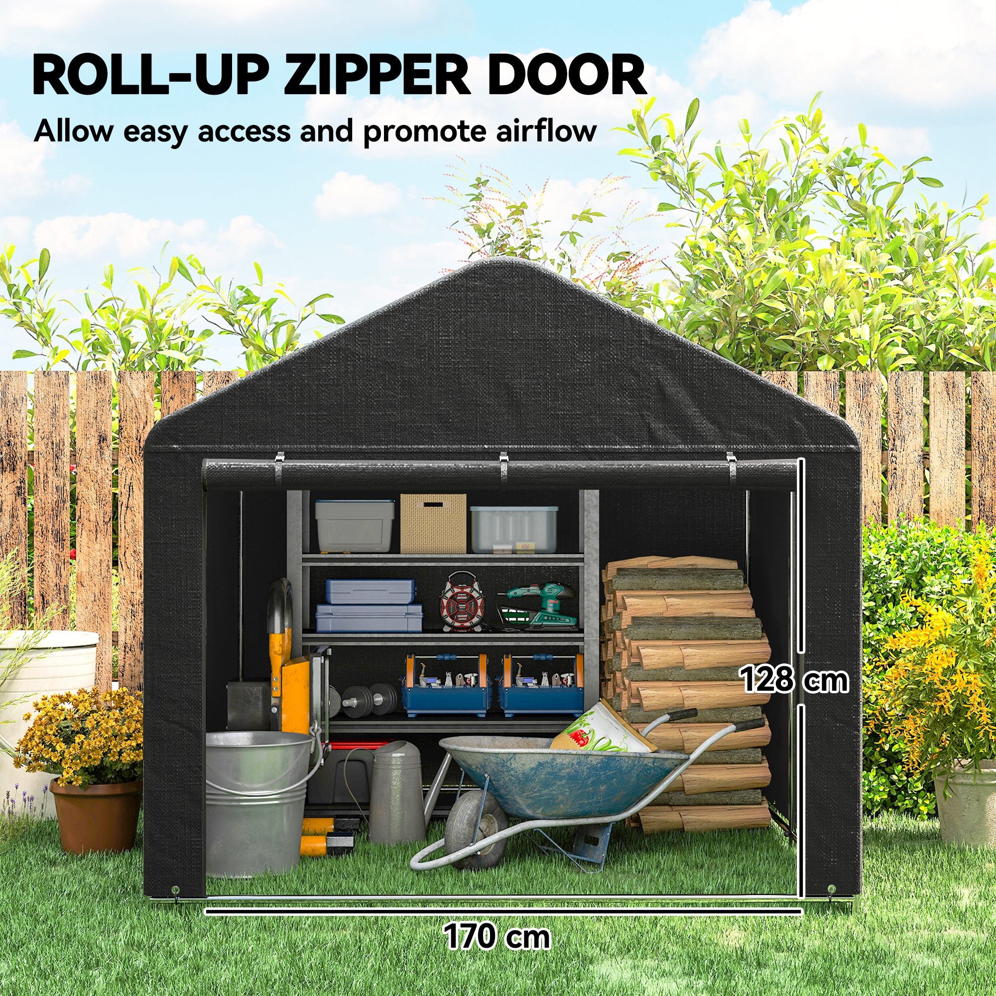 6.6' x 7.8' Portable Shed, Waterproof Bike Tent with Roll-up Zipper Door and Reinforced Galvanised Steel Frame, Black