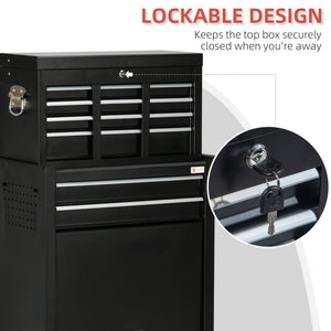 6-Drawer Tool Chest Set with 4 Wheels, Lockable Rolling Tool Box and Storage Cabinet for Garage Factory Workshop, Black