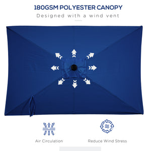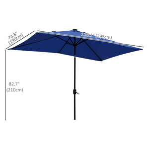 6' x 10' Patio Umbrella with 22 LED Solar Lights and Tilt, Rectangular Outdoor Table Umbrella with Crank, Dark Blue