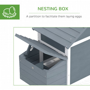 60" Large Chicken Coop Wooden Hen House for Outdoor Backyard with 2 Doors, Nesting Box and Removable Tray, White