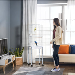 62" Rolling Bird Cage Cockatoo House Play Top Finch Pet Supply with Storage Shelf, Wheels - White