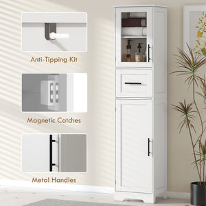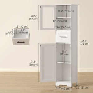 67" Tall Bathroom Storage Cabinet, Freestanding Narrow Bathroom Cabinet with Adjustable Shelves, Glass Door and Drawer