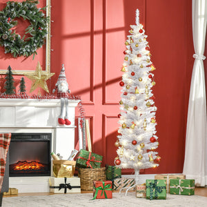 6ft Tall Prelit Pencil Artificial Christmas Tree, Holiday Décor with 395 Realistic Branches, 100 LED Lights, Foldable Metal Base, White