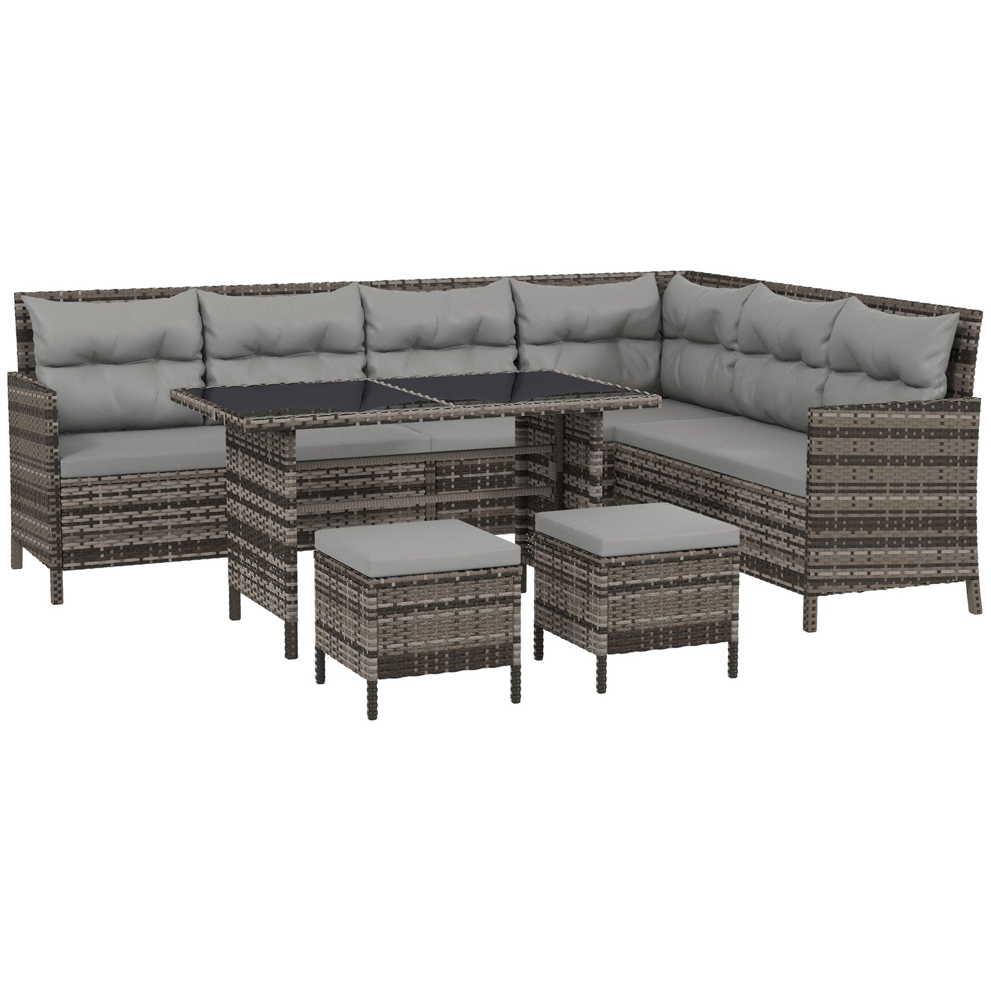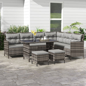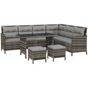 6pcs Outdoor Rattan Sofa Set Garden Wicker Sectional Couch Furniture Set with Dining Table and Chair Grey
