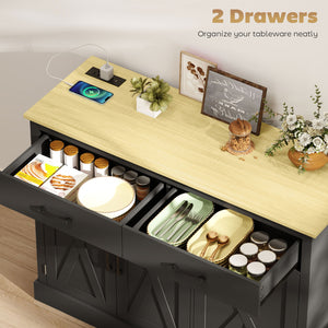 7 Gallon Tilt Out Garbage Cabinet, Kitchen Island with Charging Station, 2 Drawers, 4 Door Racks, Black