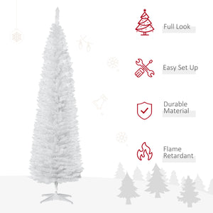 7' Pencil Christmas Tree, Slim Artificial Xmas Tree with Realistic Branches, Sturdy Metal Stand, White
