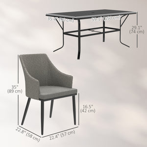 Transform your garden into a haven of relaxation with the Homivas patio dining set for 6. Crafted from all-weather PE rattan, this dining table set adds a touch of elegance and robust texture to your outdoor space. The ergonomically inclined backrest and integrated armrests ensure utmost comfort, complemented by soft, deep cushions. Suitable for family gatherings, this outdoor table and chairs set is a must-have for any patio.
