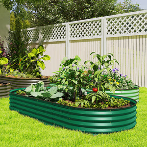 7' x 3' x 1' Large Outdoor Planter Box, Galvanized Raised Garden Bed with Metal Plant Stake, Green