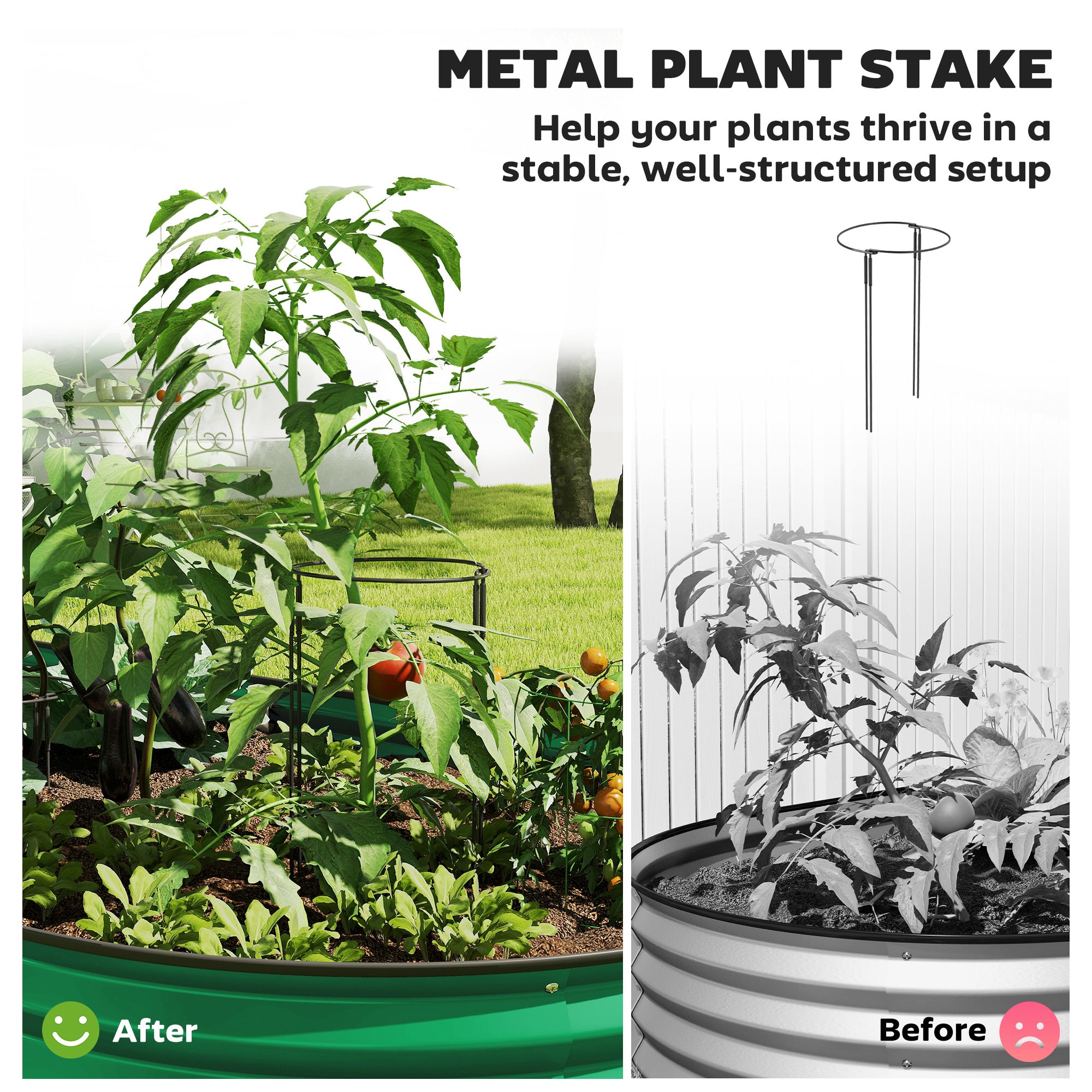 Elevate your gardening with the Homivas Metal Planter, featuring robust galvanized steel frames for a strong structure. This galvanized raised garden bed includes a supportive metal plant stake and a rubber seal for safety. Its open-bottom design ensures your plants thrive by extending roots freely into the soil, making it a top choice for your garden box or metal planter needs.