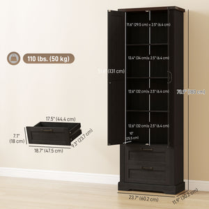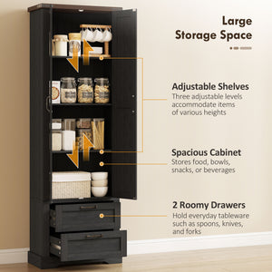 71" Tall Kitchen Pantry Cabinet, Farmhouse Kitchen Storage Cabinet with 2 Drawer and Adjustable Shelves, Black