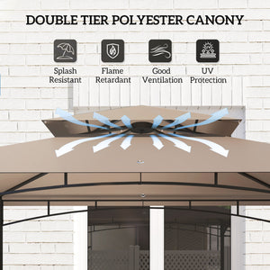 8' x 5' Grill Gazebo, Double Tiered Barbecue Grill Gazebo Shelter with Side Awning, 2 Side Shelves, 6 Hooks, Khaki