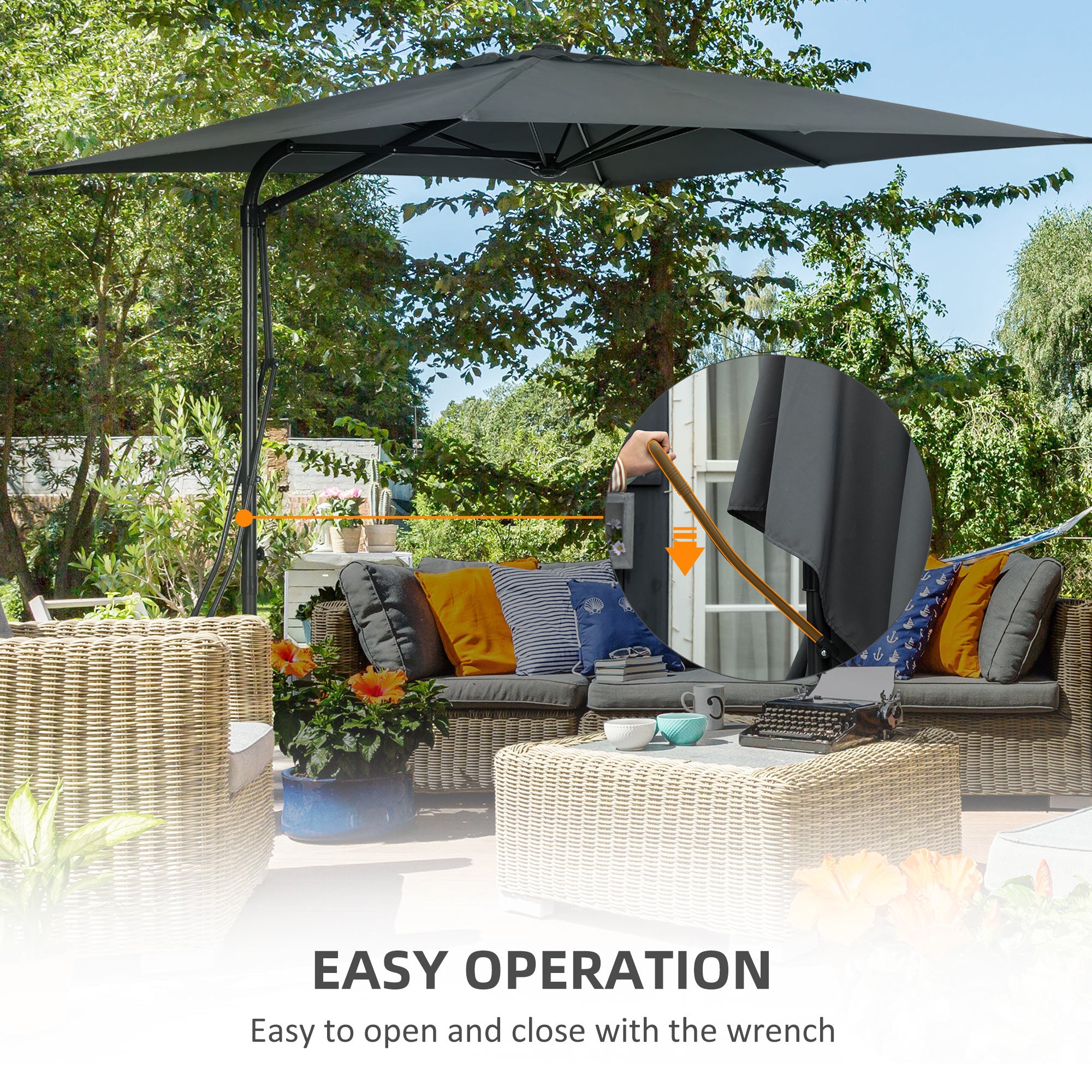 - • Easy and quick to open and close the umbrella with side wrench