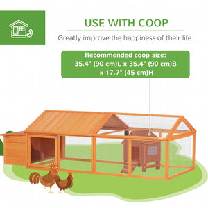 95"L Chicken Run Large Chicken Coop with Nesting Box Wooden Roof Side Door for Outdoor 4–8 Chickens