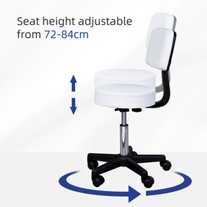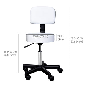 Adjustable Rolling Stool with Back, PU Leather Round Swivel Drafting Stool with Wheels for Kitchen, Salon Spa, Bar, Home Office, Massage, White