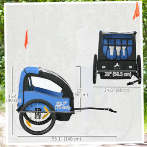 Aosom 2 Seat Bike Trailer for Kids, Baby Stroller with Storage Bag, 5 Point Harness, Bicycle Trailer with 20" Wheels, Blue