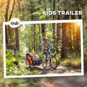 Aosom 2-Seat Child Bike Trailer for Kids with a Strong Steel Frame, 5-Point Safety Harnesses, & Comfortable Seat, Orange