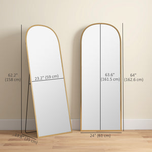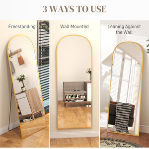 Arched Standing Mirror, 64" x 24" Full Length Mirror, Free Standing or Wall Mounted for Living Room, Bedroom, Gold