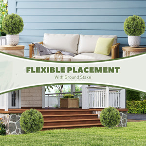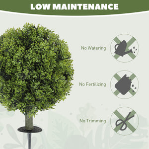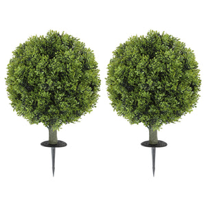 Artificial Boxwood Topiary Trees Set of 2 with Ground Stake, UV Resistant Fake Plants for Indoor Outdoor, Green
