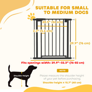 Keep toddlers and small pets safe while cooking in the kitchen, playing in the living room, or going up the stairs. This PwaHut pet gate fits 29.9" -32.3" (76–82 cm) openings, 29.9" (76 cm) high, with certified steel construction and dual locks for peace of mind. The pet gate opens both ways and closes automatically, making it easy to pass through when carrying groceries or a baby. Pressure-fit or screw-mount for flexible, damage-free setup anywhere in your home.