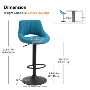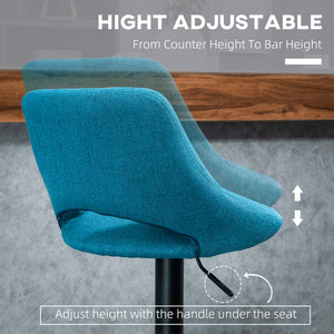 Bar Stools Set of 2, Swivel Counter Height Barstools with Adjustable Height, Linen Upholstered Bar Chairs with Round Metal Base and Footrest, Blue