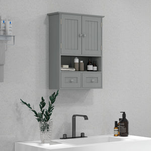 Bathroom Wall Cabinet, Medicine Cabinet, Over Toilet Storage Cabinet with Shelf and Drawers for Hallway, Living Room, Grey