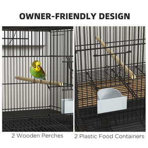 Birdcage for Canaries, Lovebirds Finches, Budgie Cage with Removable Tray, Bottom Mesh Panel, Wooden Perches, Swing, Ramp, Food Containers, 30" L x 18" W x 18" H