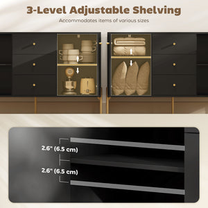 Buffet Cabinet, Modern Sideboard with 3 Soft-Close Drawers and 2 Adjustable Shelves for Living Room, Kitchen, Black