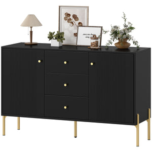 Tired of a cluttered living room and uninspired decor? The daily mess can detract from your home's beauty, while flimsy furniture adds a layer of worry. The Homivas modern sideboard offers a serene solution. Its generous storage tidies your essentials, while the chic black and gold design elevates your space. A unique five-leg structure provides enhanced stability, ensuring this buffet cabinet brings both style and steadfast organization to your home.