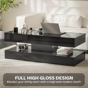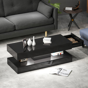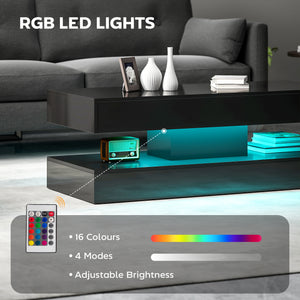 Coffee Table with Adjustable LED Lights, Modern Living Room Table with 2 Drawers, Open Shelf, Remote, High Gloss Black