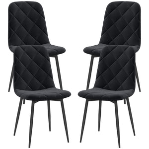 Dining Chairs Set of 4, Upholstered Dining Room Chairs with Steel Legs, Modern Kitchen Chair for Dining Room, Black