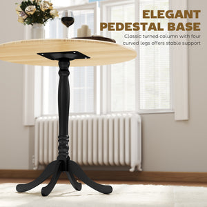 - • Features a classic turned pedestal with curved legs for ample legroom