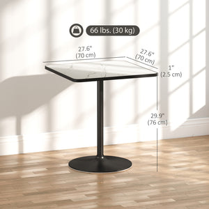 Dining Table for 4, Modern Kitchen Table with Marble Effect Tabletop and Round Base, White