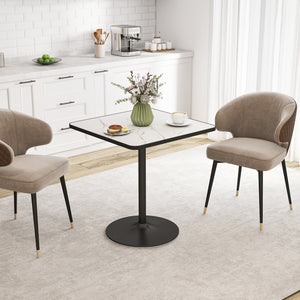 Gather around the Homivas kitchen table, where style meets functionality. This 4-seater dining table features a chic white marble tabletop that brightens any kitchen or dining space. Its robust, round base crafted from powder-coated metal ensures stability, while the non-slip pads protect your floors. A versatile piece that doubles as a dinner table or a desk for your home office.
