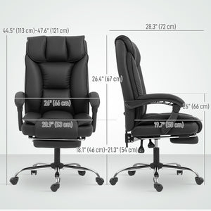 Executive Office Chair, Pet-Friendly Leather Ergonomic Desk Chair with Footrest, Swivel Recliner, Black