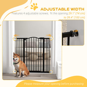 Extra Tall Dog Gate with Door, Pressure Fit, Auto Close, Double Locking for Doorways Hallways Stairs, 29"-39", Black