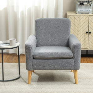 Fabric Accent Chair, Modern Upholstered Armchair with Wood Legs and Wide Padded Seat, Grey