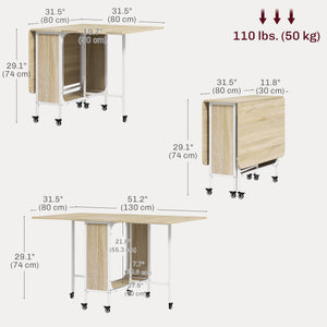 Folding Dining Table, Extendable Kitchen Table for Small Spaces with Storage Shelf and 6 Wheels, Natural Wood