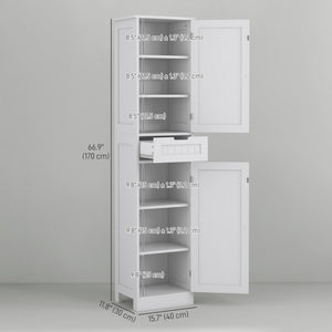 Do you need more storage space in your bathroom? Of course you do. This slim bathroom cabinet gives you that extra boost you need, without having to worry about finding a place for it. This bathroom floor cabinet fits into those tight corner spaces that otherwise get left empty. Use that extra space to store daily hygiene products, cleaning supplies or towels. Don't be stuck putting everything in the hallway unit, keep what you need close by, when you need it with this Homivas tall cabinet.