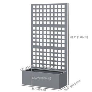 Galvanized Raised Garden Bed Planter Box with Trellis for Climbing Plant, Vegetable, Vine, 35"x16"x70" Grey Wood Effect