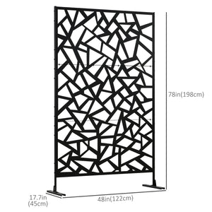 Garden Privacy Screen, Decorative Outdoor Divider, Metal Privacy Screen with Stand, Irregular Fence Style, Black