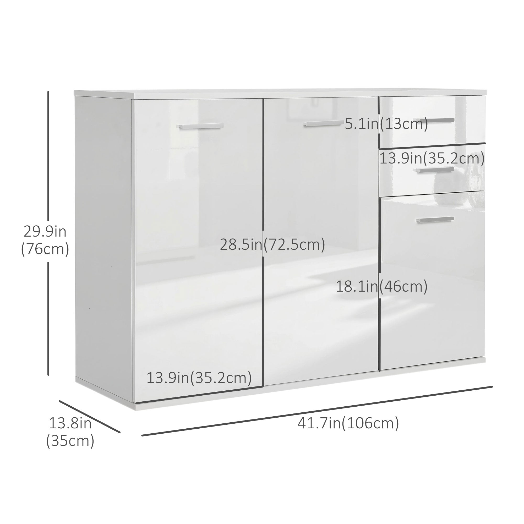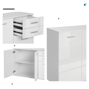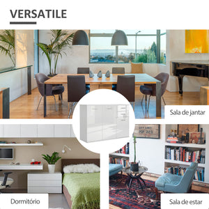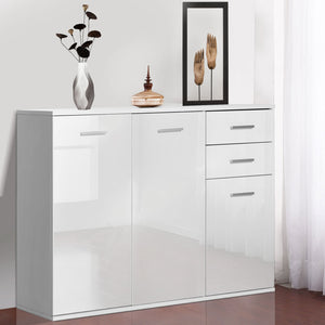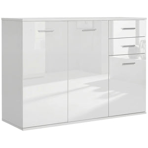 High Gloss Sideboard with 2 Drawers and 3 Doors, Buffet Cabinet with Adjustable Shelf, Coffee Bar Cabinet with Storage, White