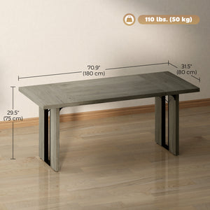 Industrial Kitchen Table for 8, 71" Rectangular Dining Table with Thick Tabletop for Dining Room, Grey Wood Finish