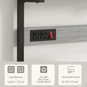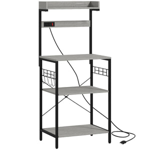 Kitchen Baker's Rack with Power Outlet, Coffee Bar Station with Adjustable Shelves and Hooks, Distressed Grey
