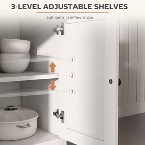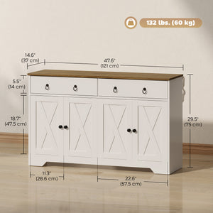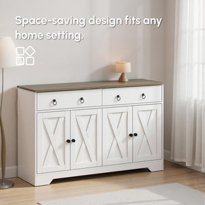 Kitchen Sideboard Cabinet with 2 Drawers, 4 Barn Doors and 2 Adjustable Shelves, Buffet Table for Living Room, White