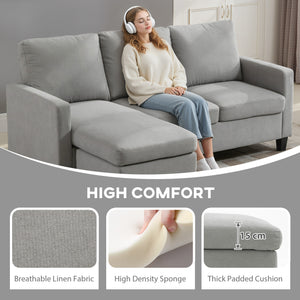 Enhance your living room with this L-shaped couch, offering ample and comfortable seating. The reversible sofa's corner-friendly design optimizes room space, and its reversible feature allows flexible layout options. Upholstered in breathable linen fabric, it combines modern aesthetics with practical functionality. This sectional sofa boasts reliable construction and a sleek appearance, making it a valuable addition for homeowners looking to elevate their decor.