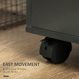 - • 4 caster wheels provide easy mobility, and two can be locked for stability