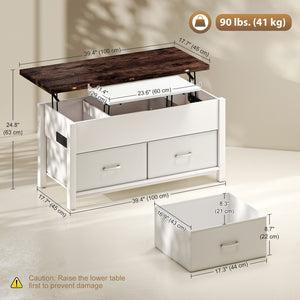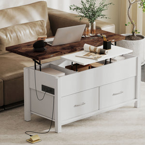 Lift Top Coffee Table, Center Table with 3 Hidden Compartments, 2 Fabric Drawers, Expandable Top and Charging Station